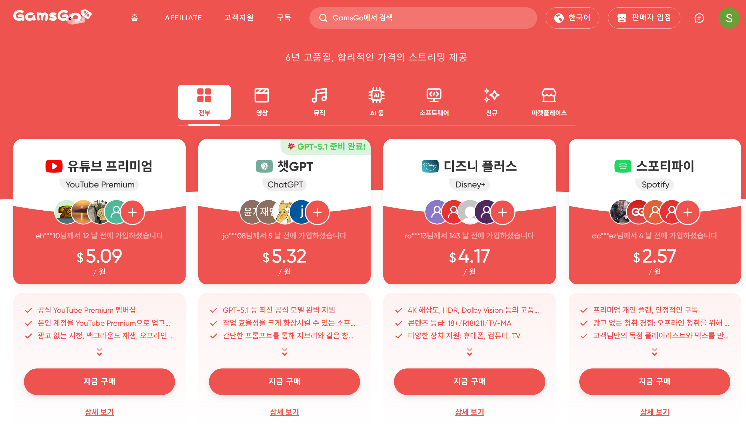 그동안 유튜브 프리미엄을 계속 사용해 왔지만, 정가 결제가 점점 부담되기 시작하면서 더 합리적인 방법을 찾게 되었어요. 그러다 알게 된 플랫폼이 바로 겜스고라는 해외 구독 서비스였습니다. 이름이 조금 낯설어서 처음엔 저도 ‘갬스고’라고 검색했는데, 실제로 ‘겜스고 가입’, ‘갬스고 가입’ 같은 키워드가 많이 보이더라고요. 이미 많은 분들이 사용 중이라는 걸 뒤늦게 알고 조금 놀랐어요.