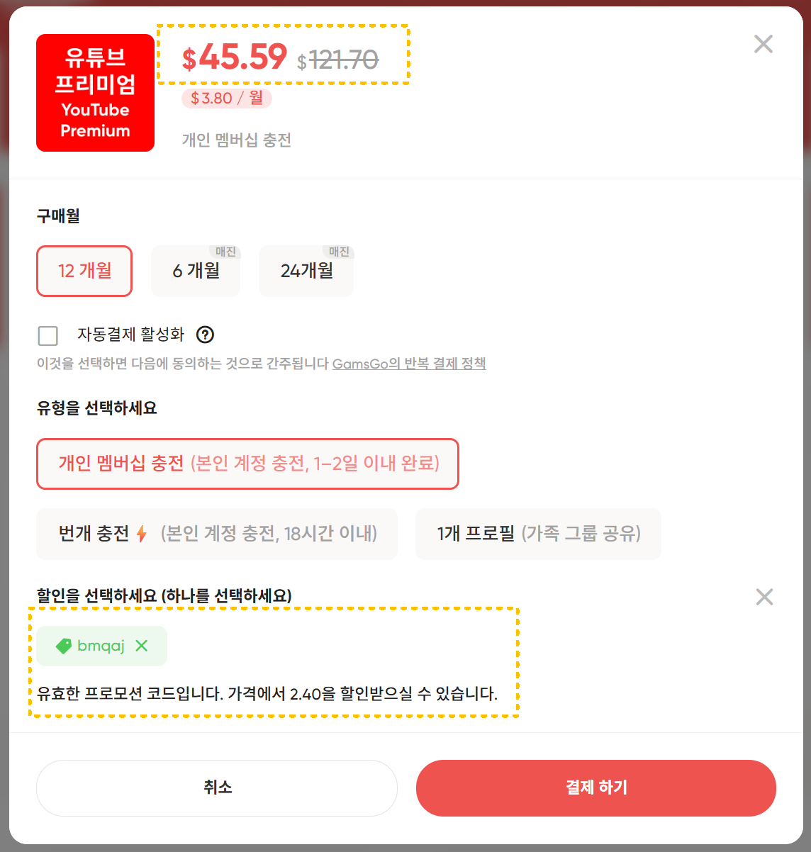 유튜브 프리미엄 싸게 쓰는법 찾고 있다면? gamsgo 할인코드 BMQAJ로 구독 서비스를 저렴하게 이용하는 방법과 실 사용 후기를 한눈에 확인해보세요.